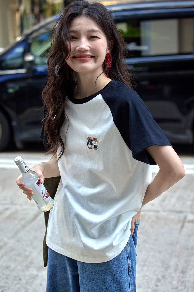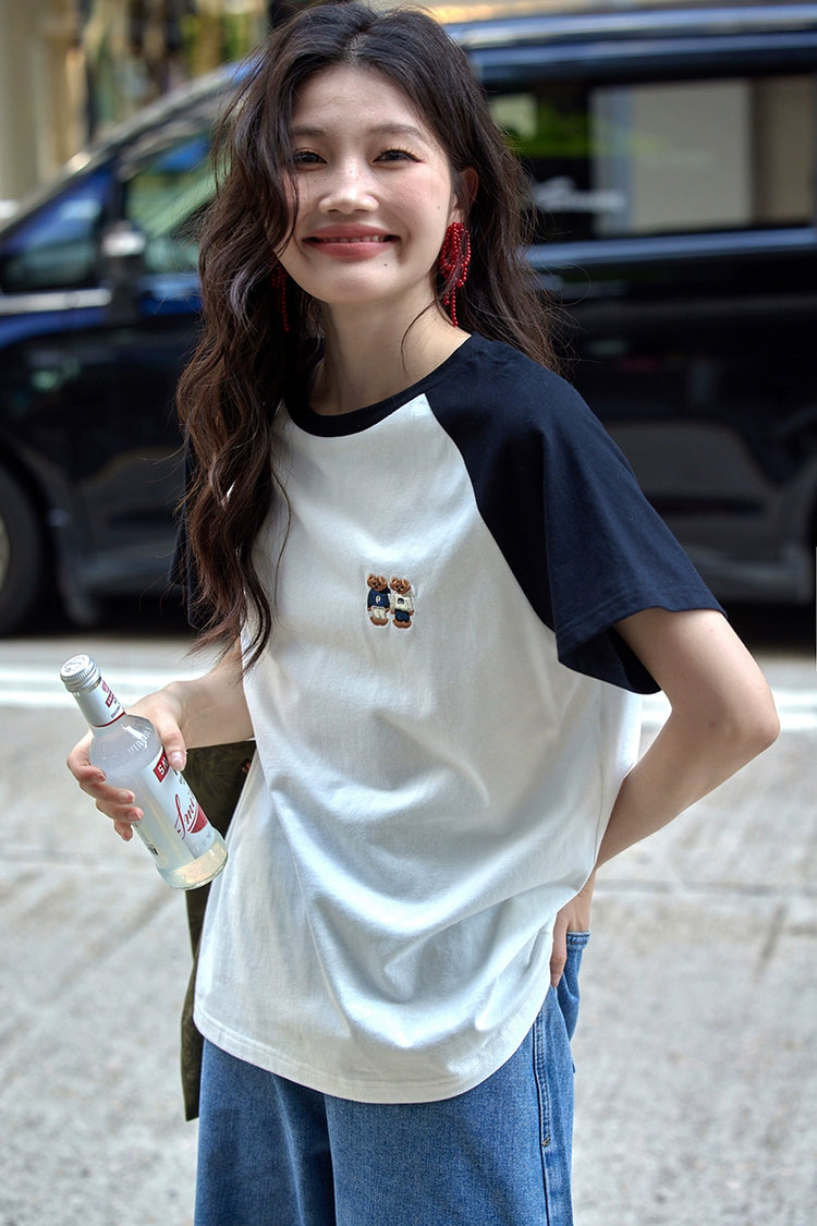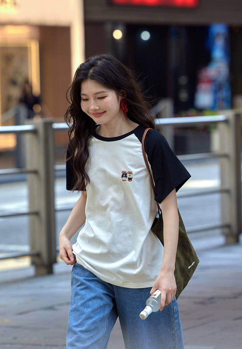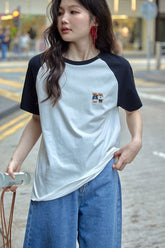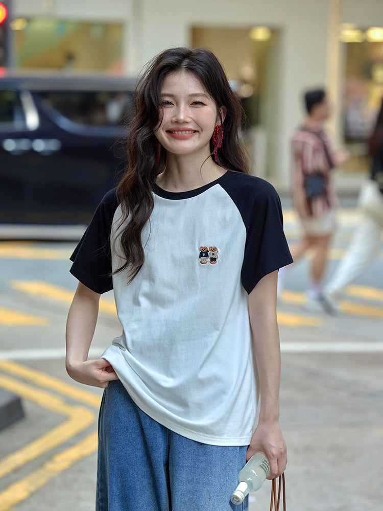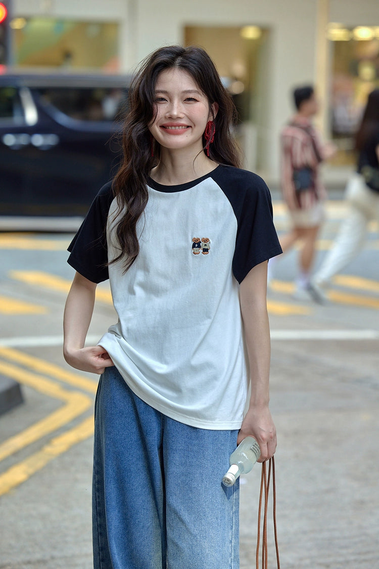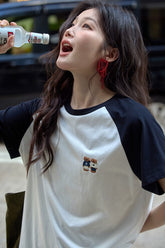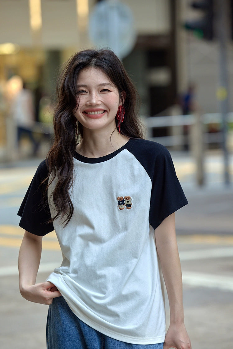 カラーブロックラウンドネックTシャツ