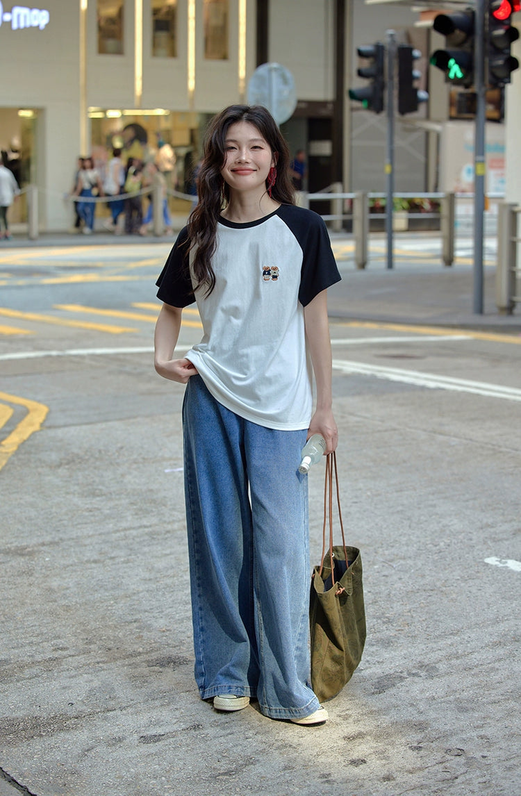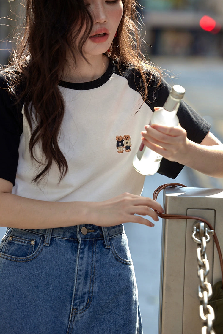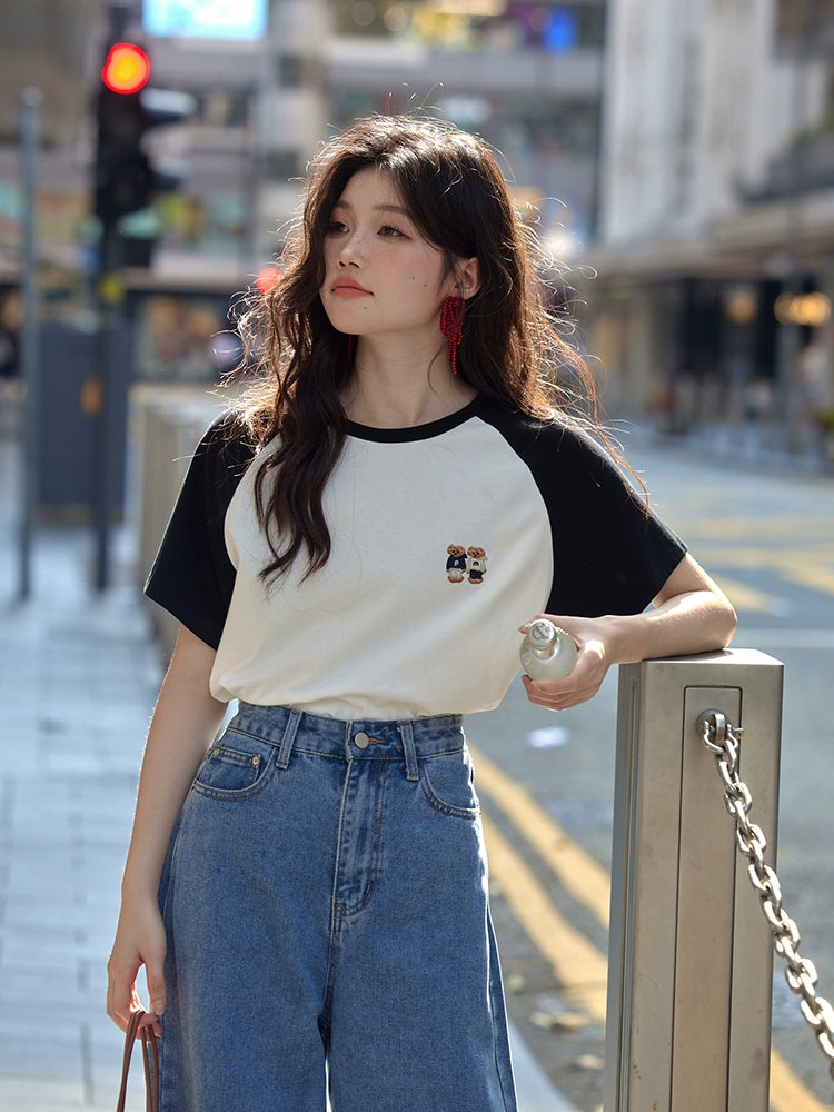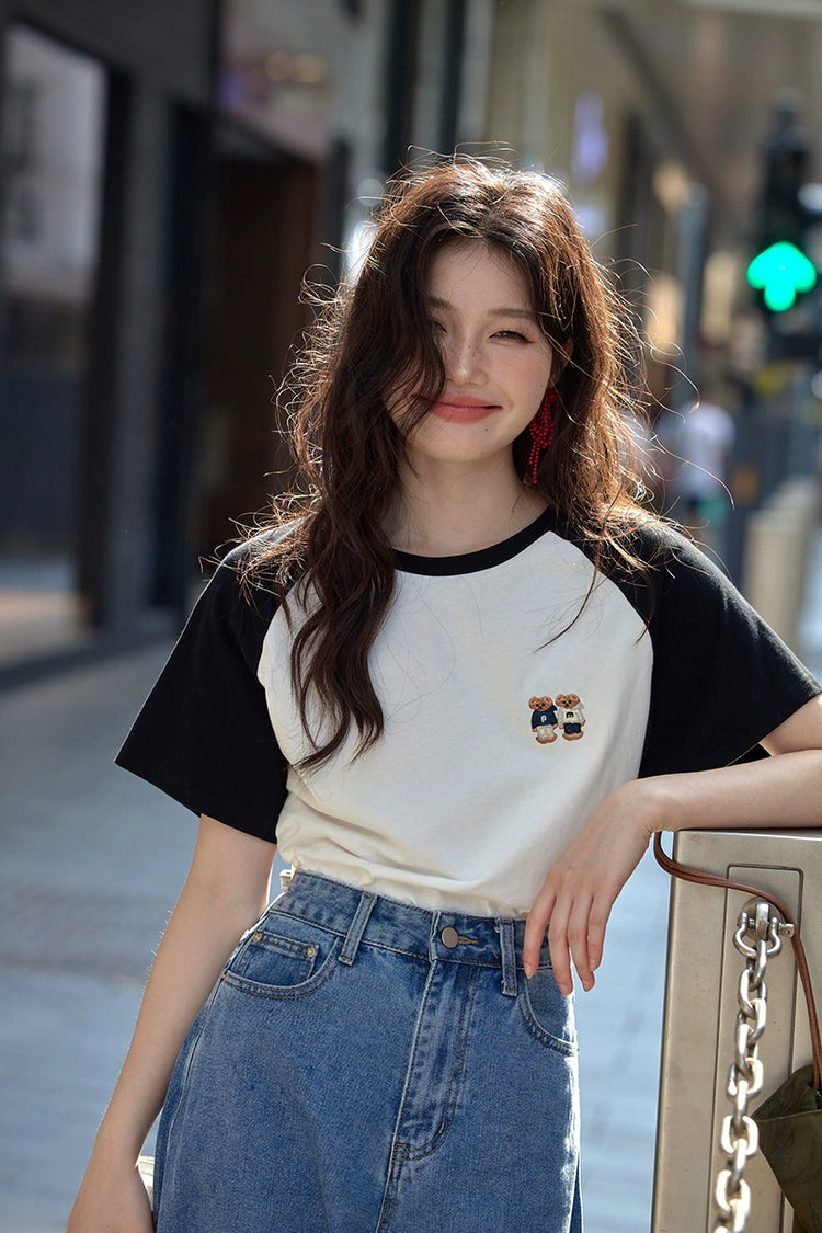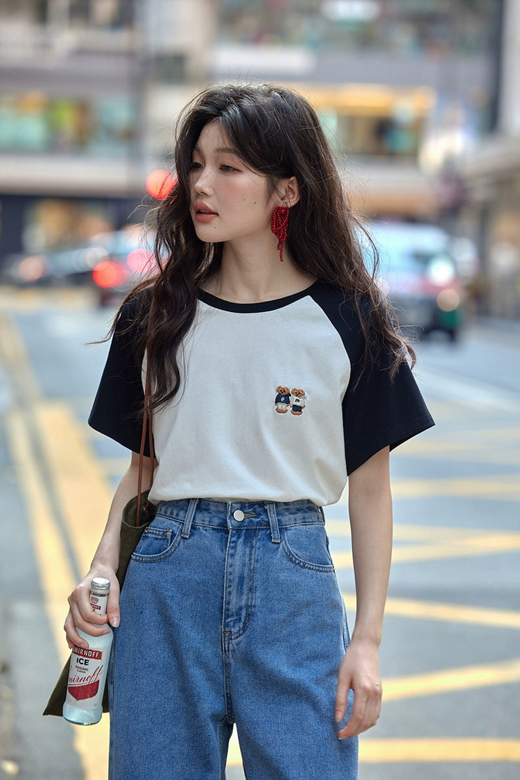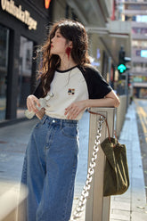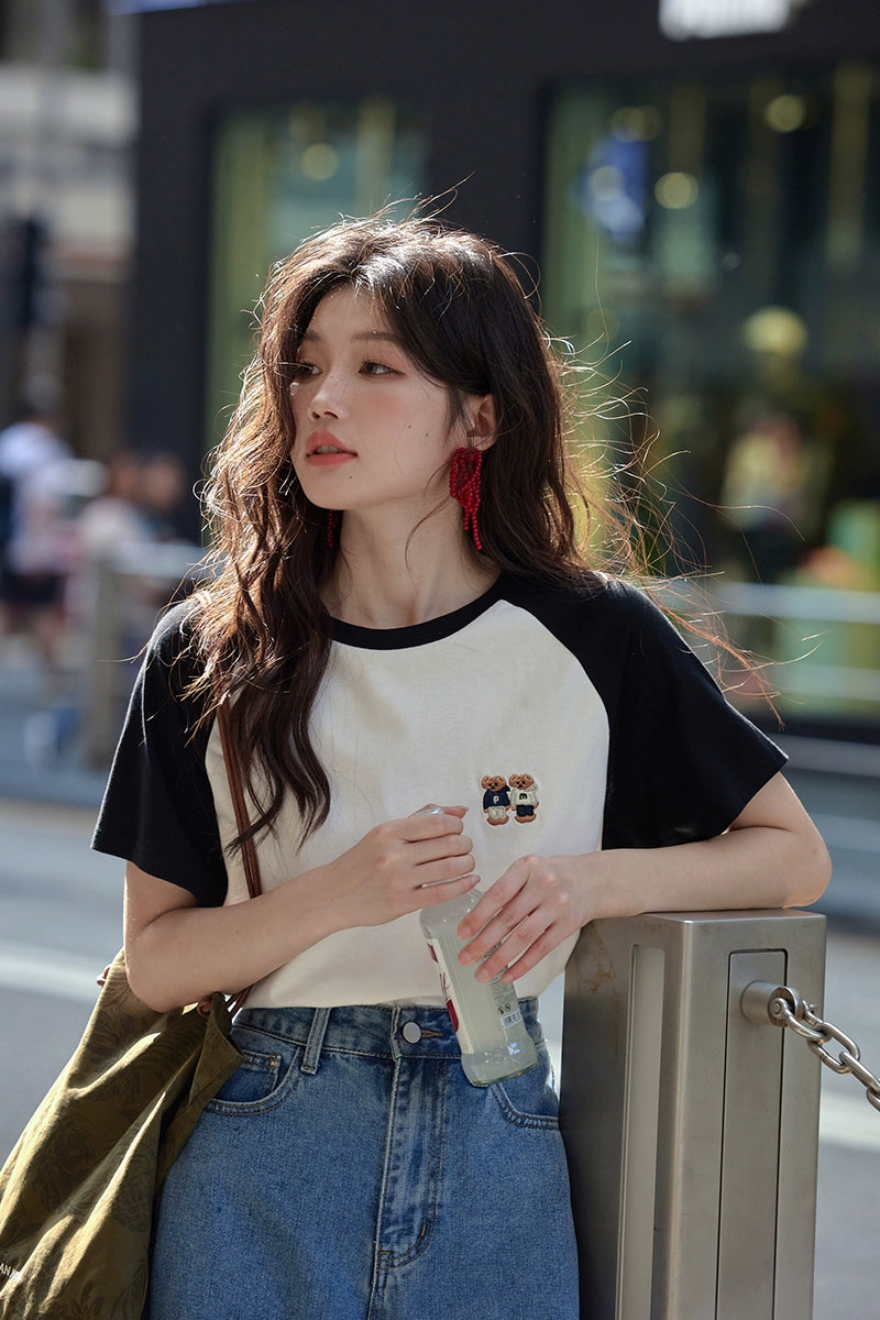 カラーブロックラウンドネックTシャツ