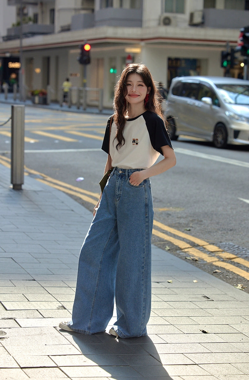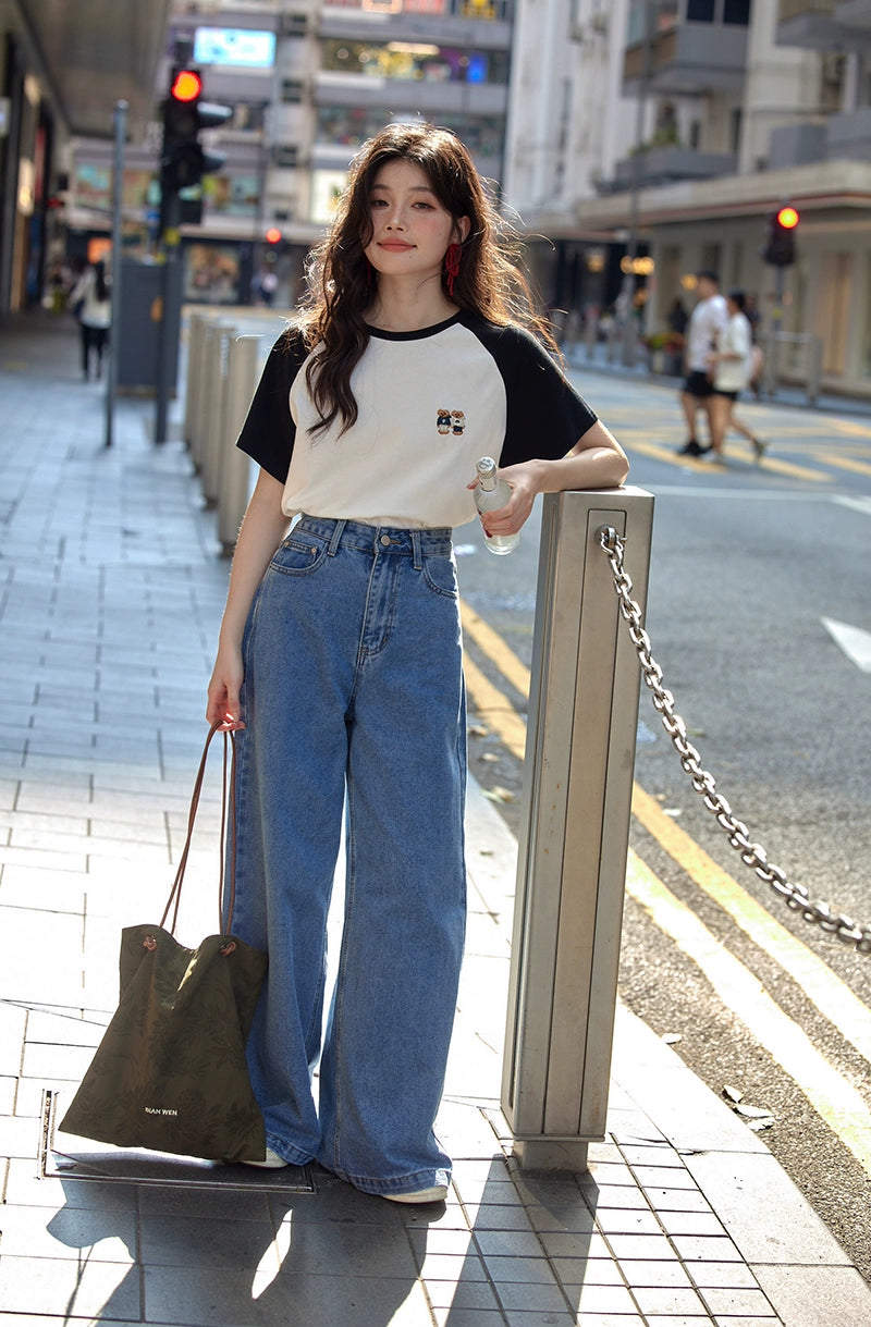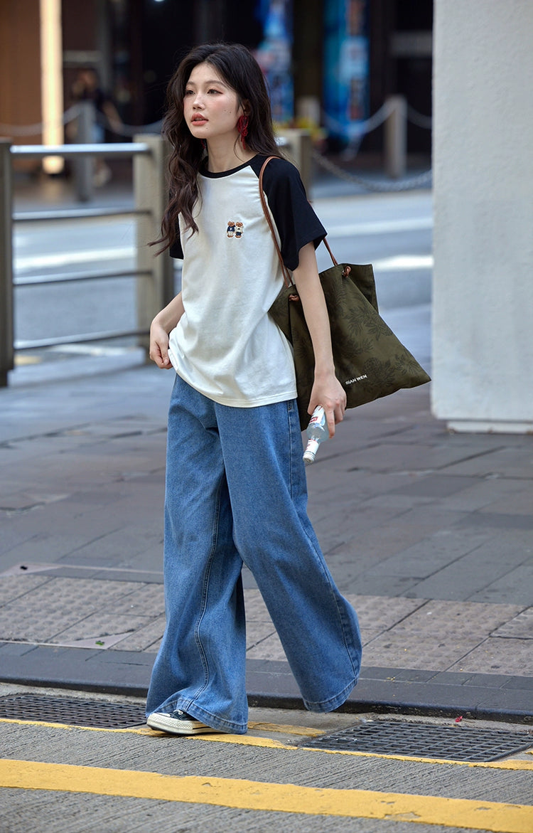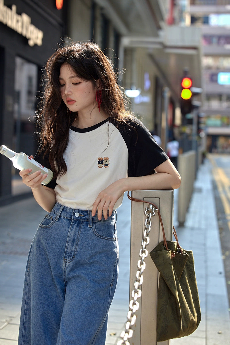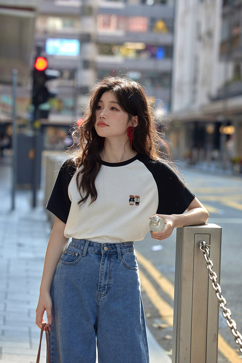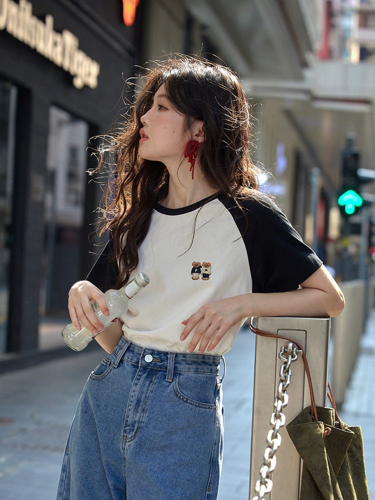 カラーブロックラウンドネックTシャツ