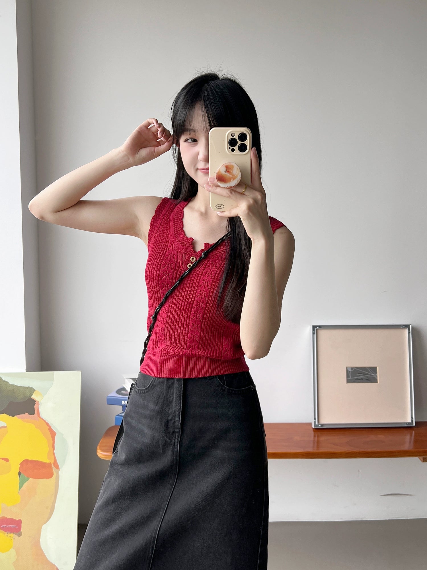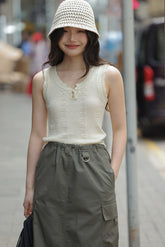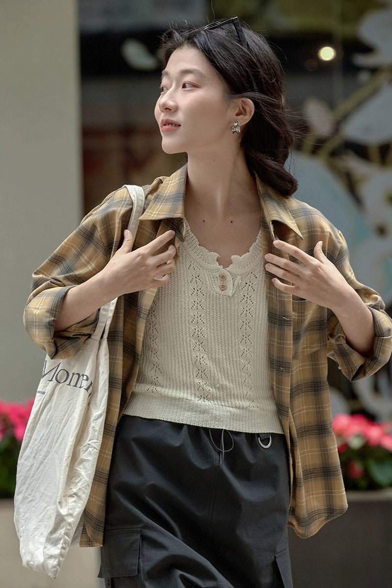LILIAN ROBEのスパイシーアプリコットデザイントップは、柔らかい質感と上品なデザインが魅力。どんなシーンでも活躍し、幅広い年齢層に支持されています。編み地のディテールとボタンで、洗練されたスタイルを演出します。