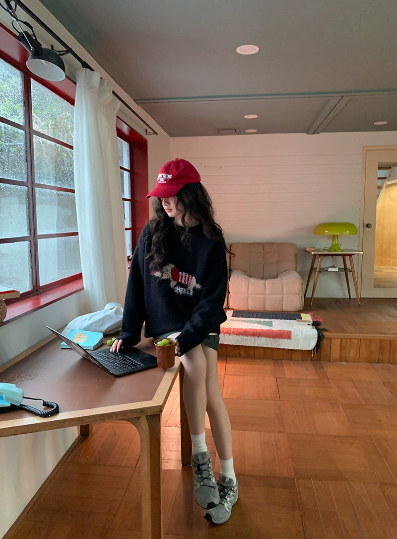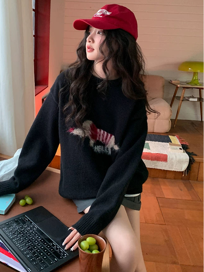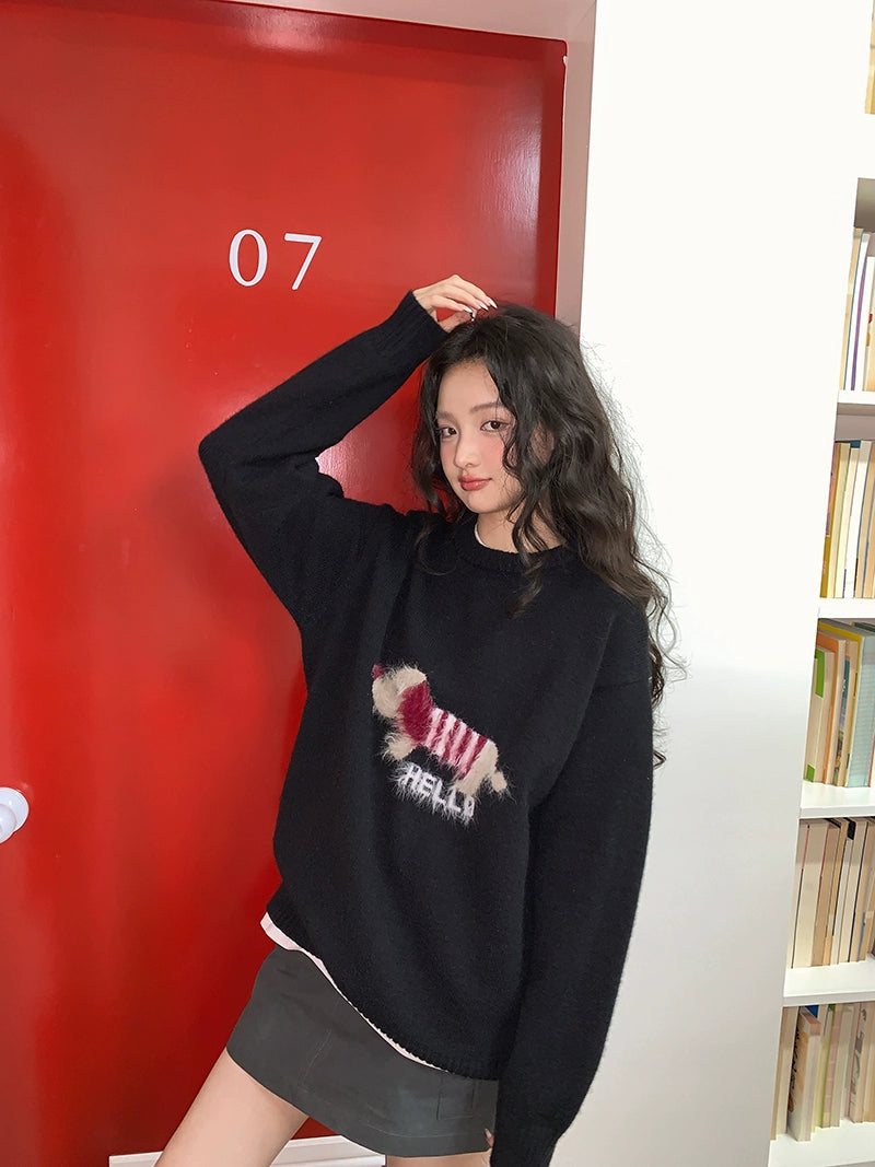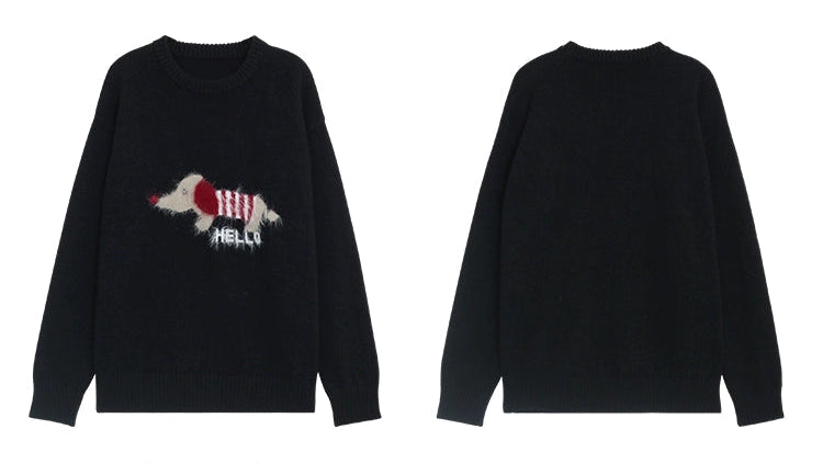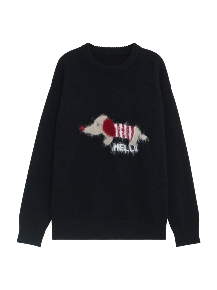 LILIAN ROBEのコージー紺ニットプルオーバーは、可愛らしい犬の刺繍が特徴。柔らかい素材で、快適な着心地を提供します。カジュアルからフォーマルまで、幅広いスタイルにマッチします。