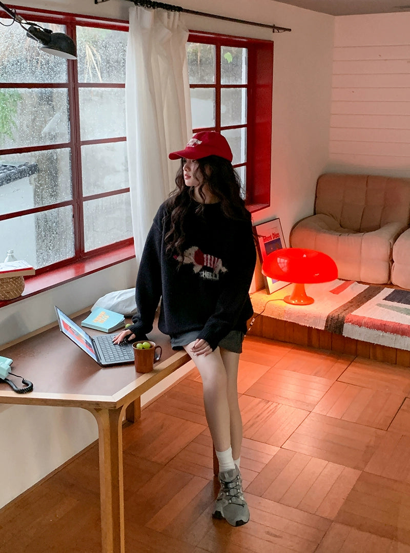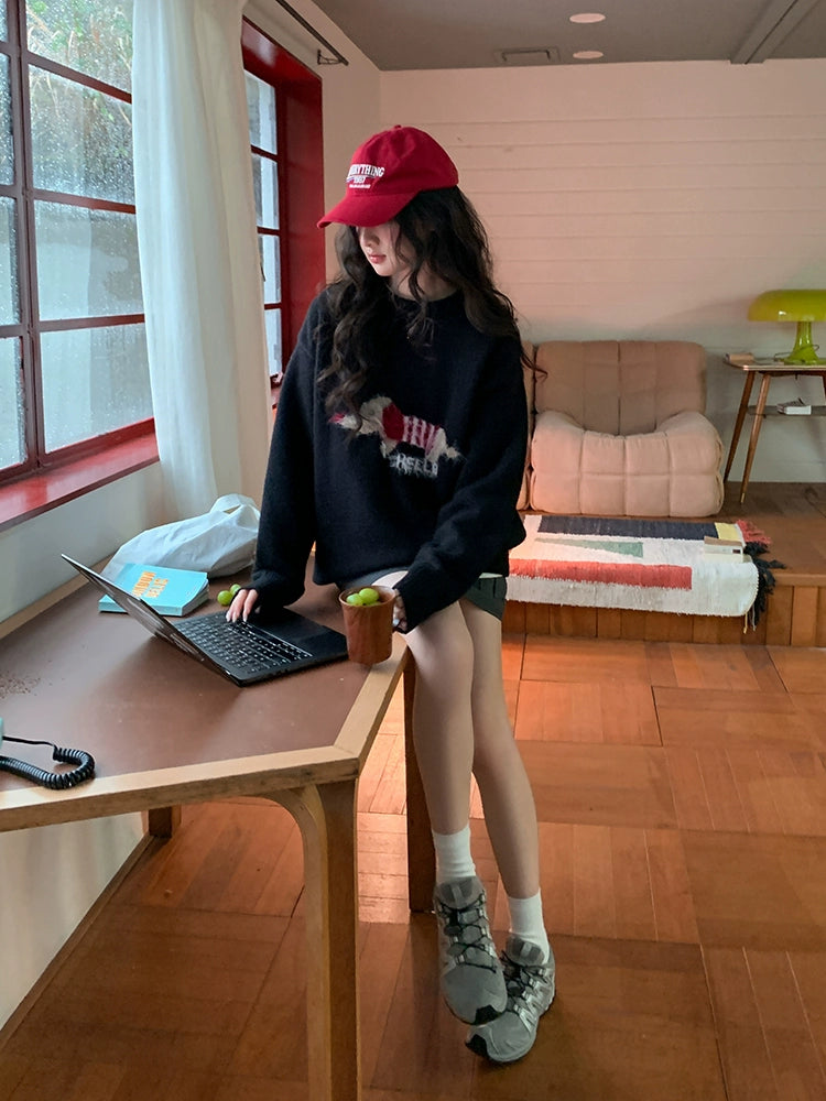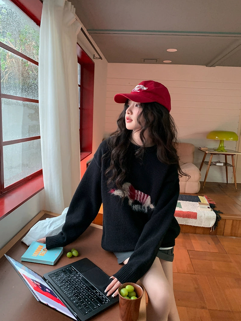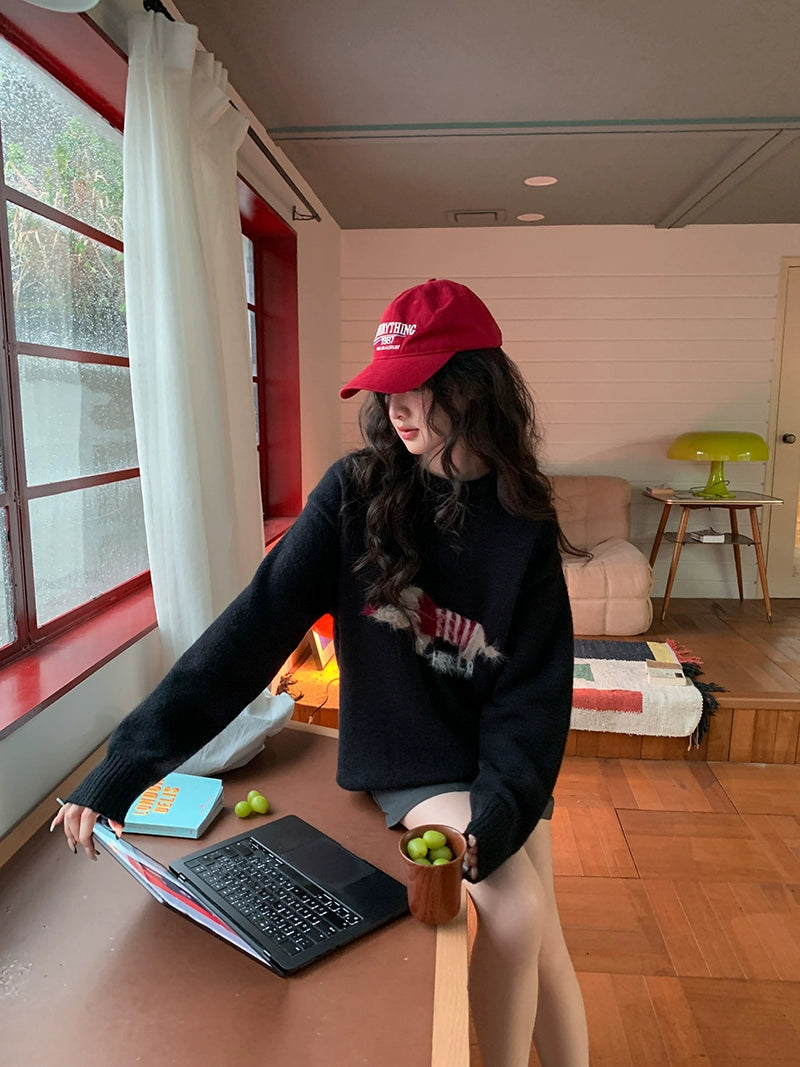 LILIAN ROBEのコージー紺ニットプルオーバーは、可愛らしい犬の刺繍が特徴。柔らかい素材で、快適な着心地を提供します。カジュアルからフォーマルまで、幅広いスタイルにマッチします。