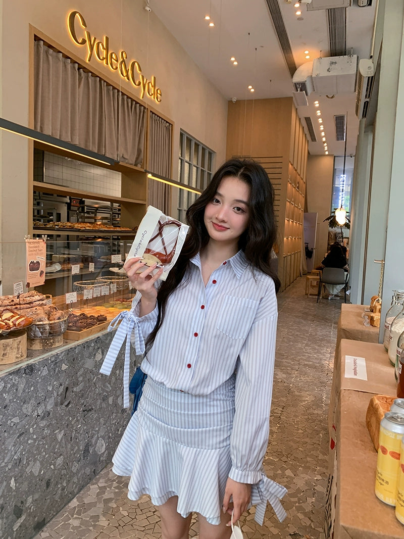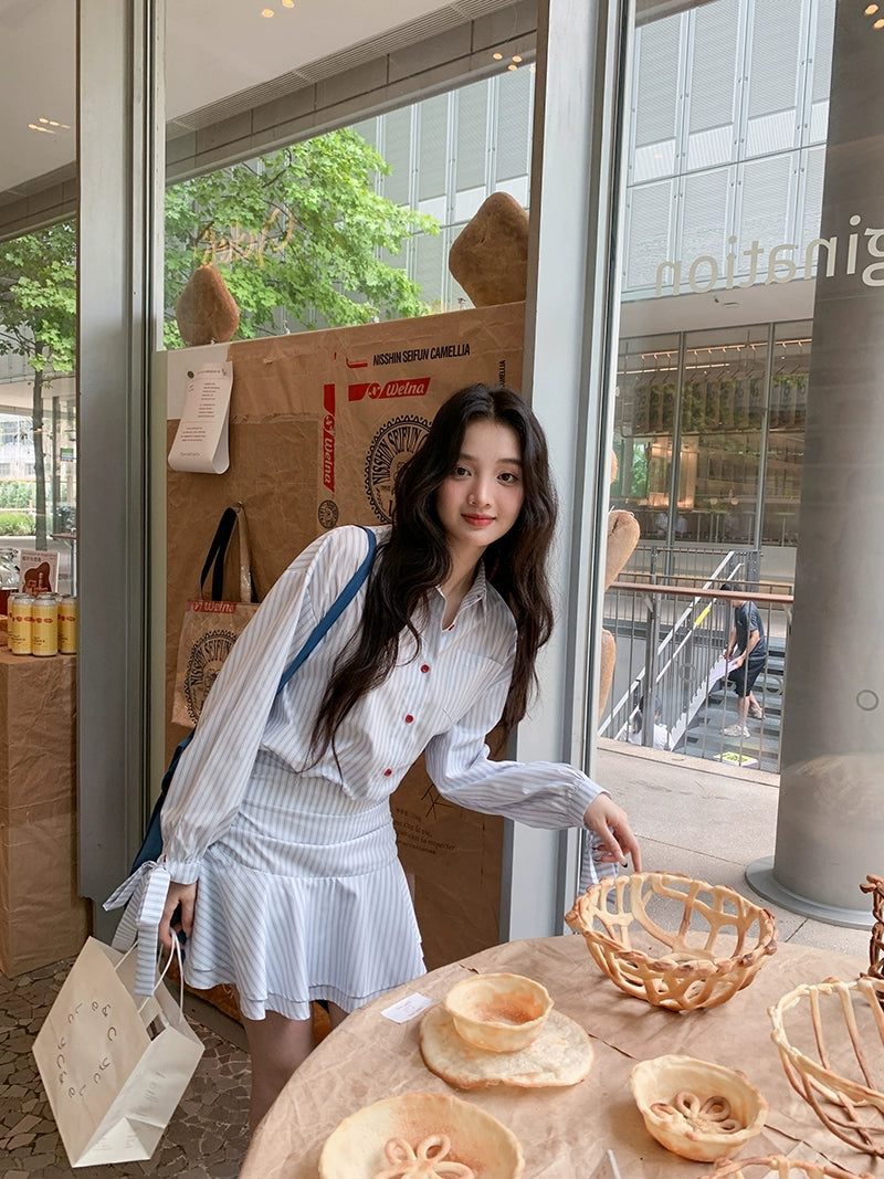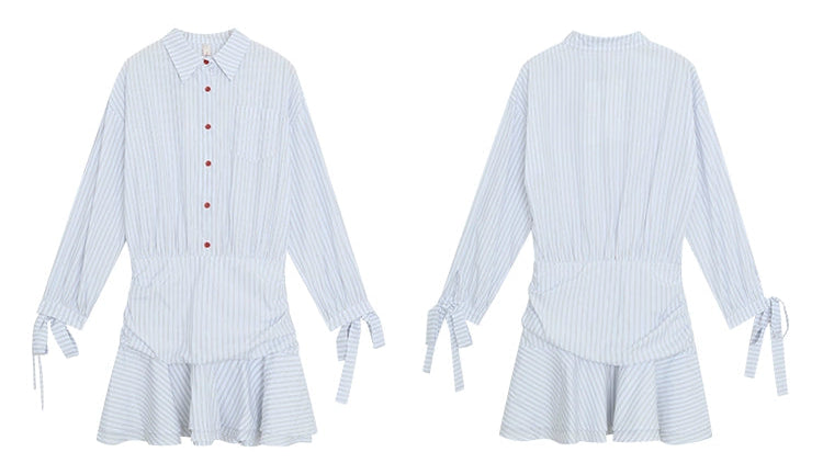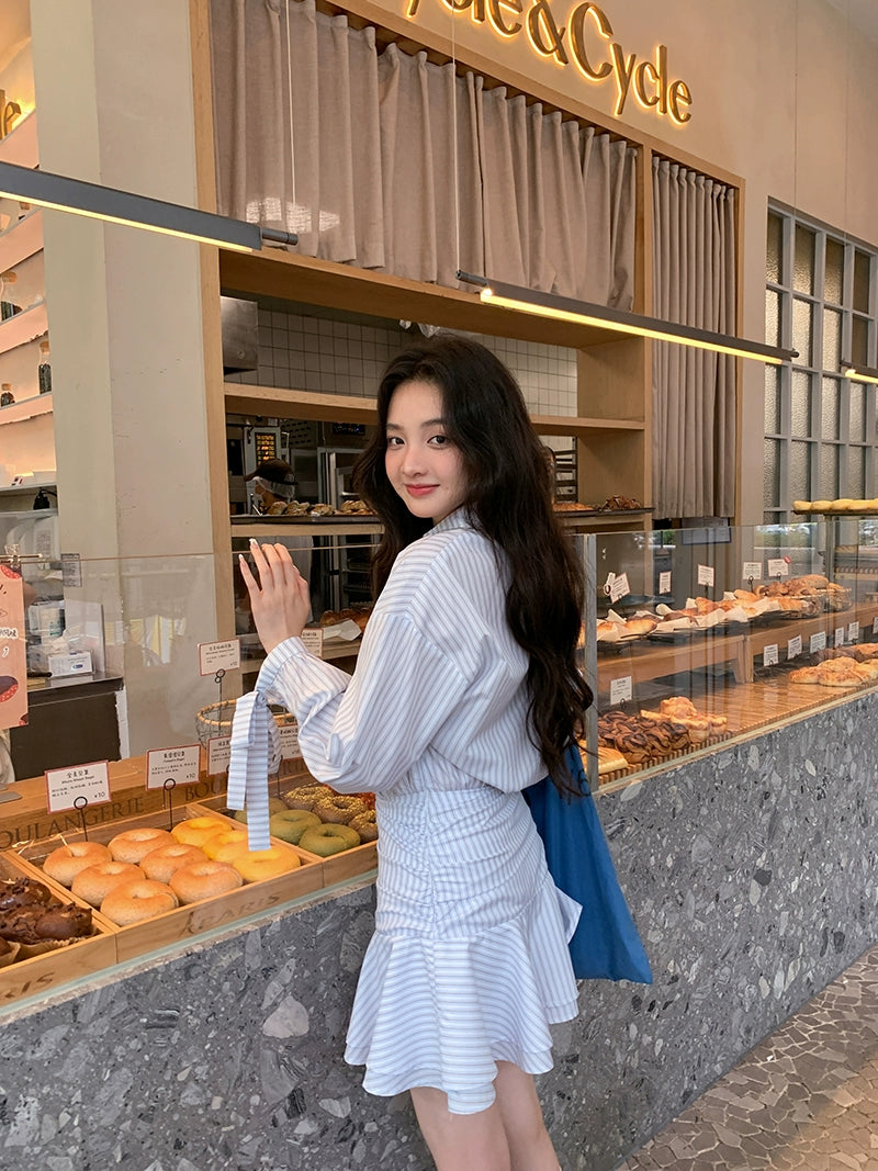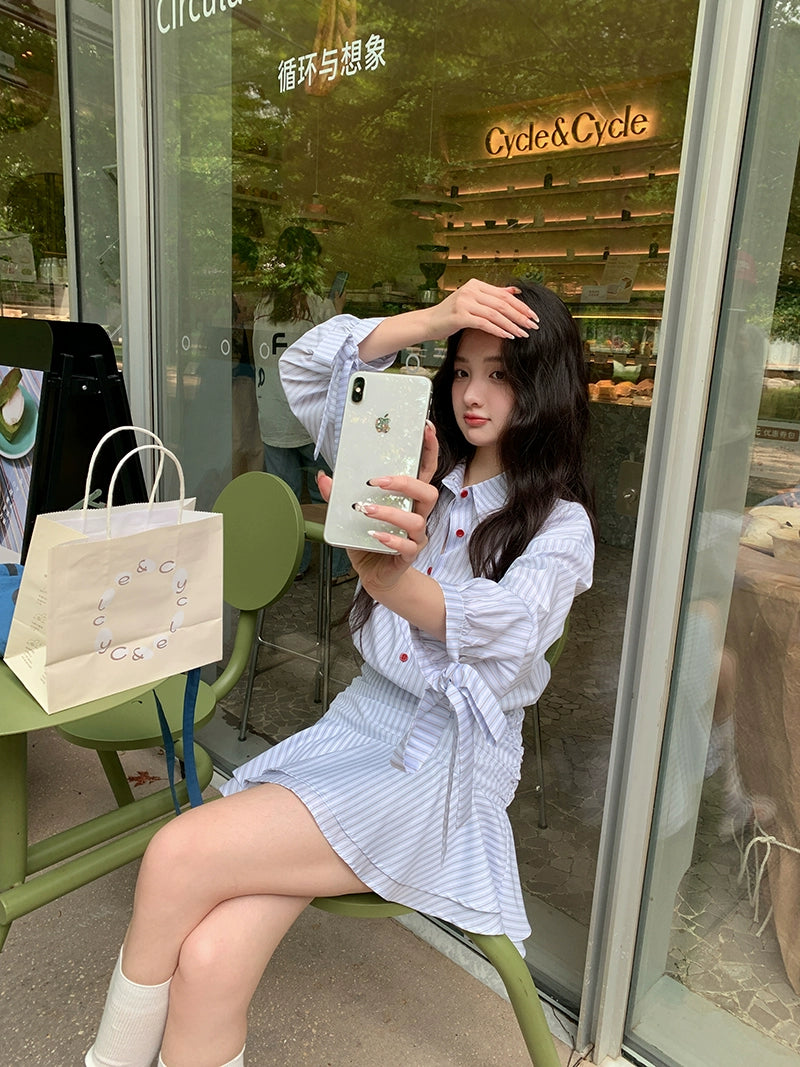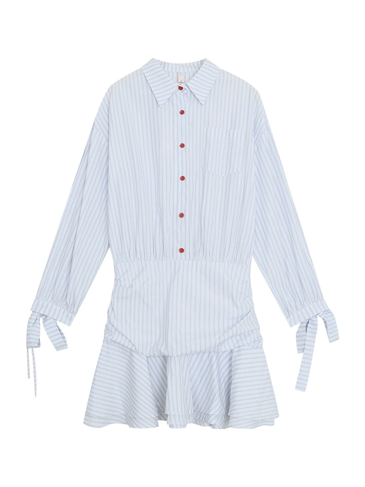 LILIAN ROBEのシックフリルハイウエストワンピースは、上品でありながらカジュアルさも兼ね備えたデザイン。ストライプパターンと赤いボタンが特徴で、普段使いから特別な日まで活躍するアイテムです。どんなスタイルにもマッチし、自分らしさを引き立てます。