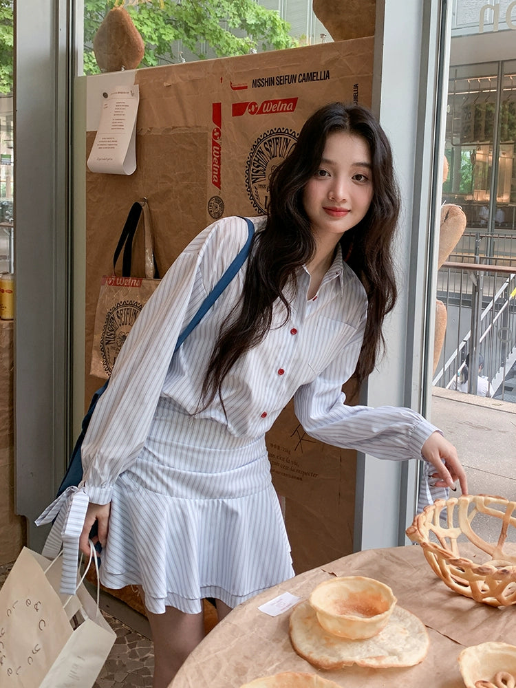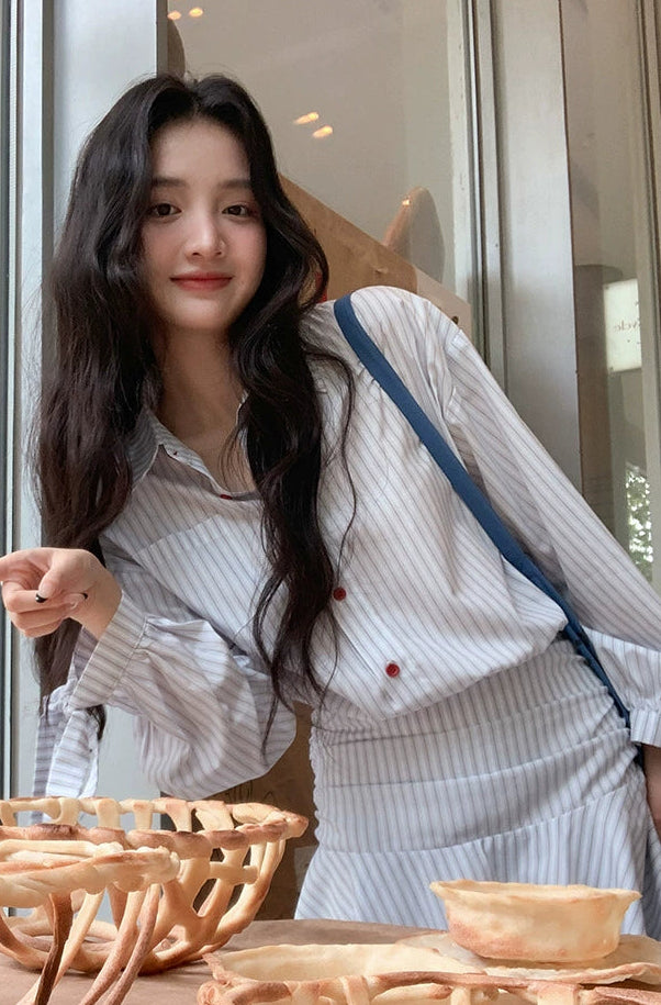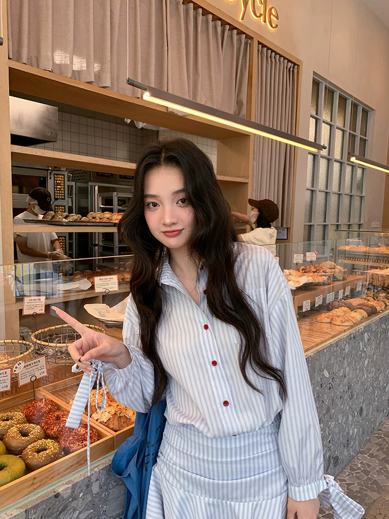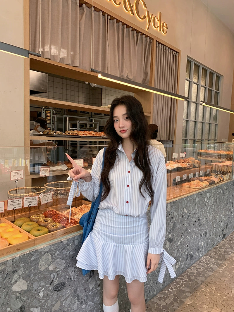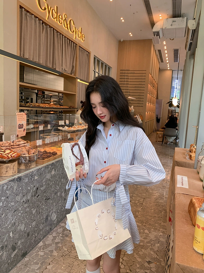 LILIAN ROBEのシックフリルハイウエストワンピースは、上品でありながらカジュアルさも兼ね備えたデザイン。ストライプパターンと赤いボタンが特徴で、普段使いから特別な日まで活躍するアイテムです。どんなスタイルにもマッチし、自分らしさを引き立てます。