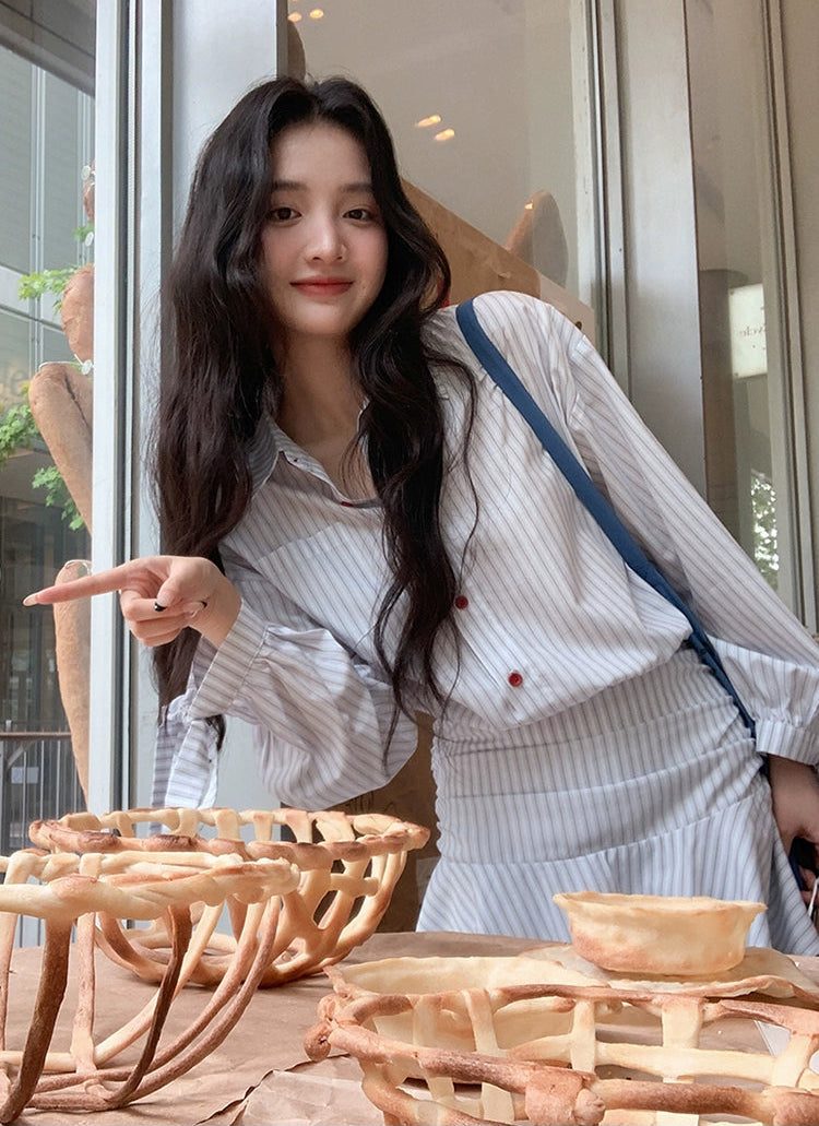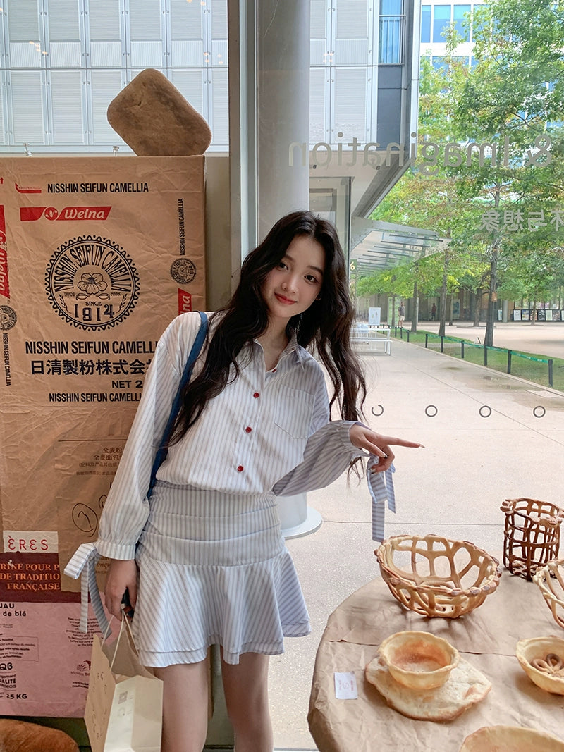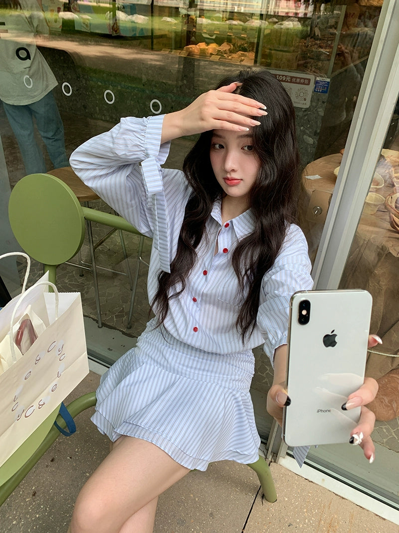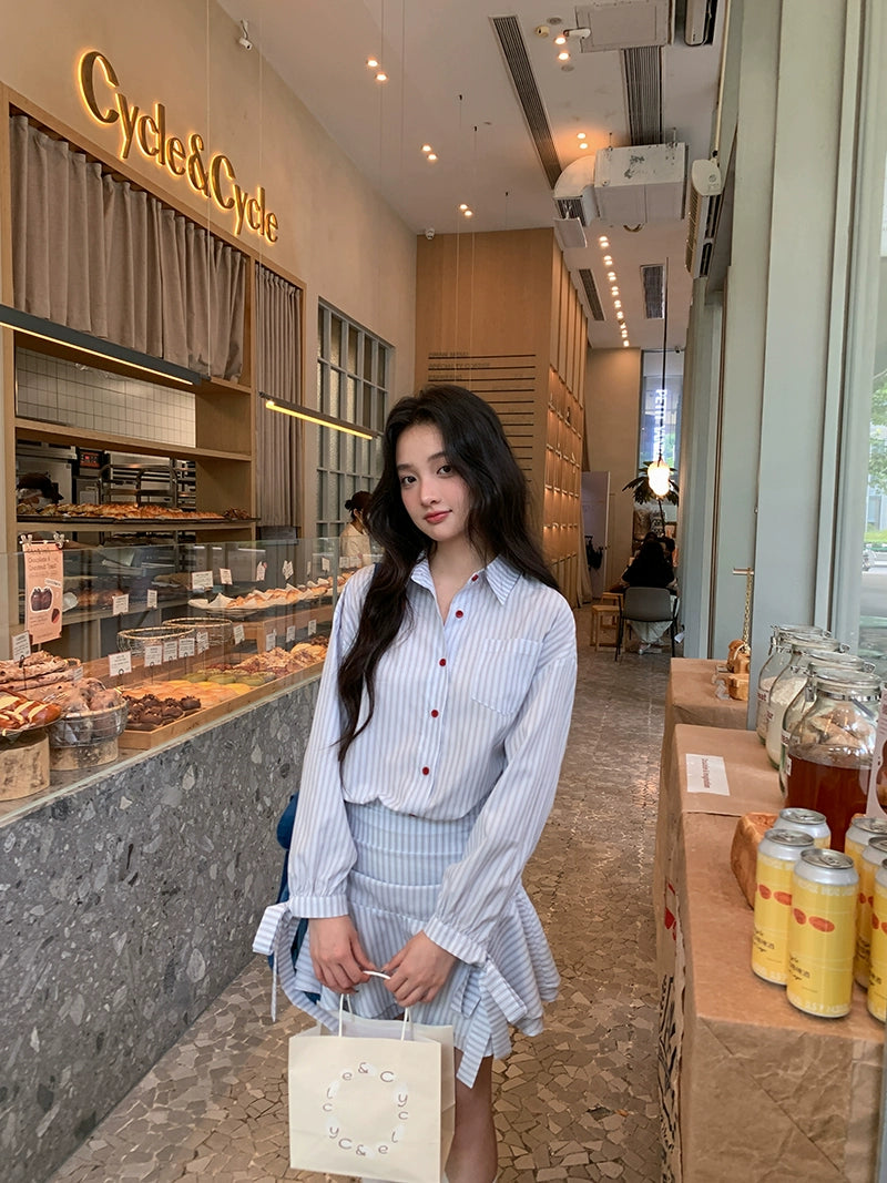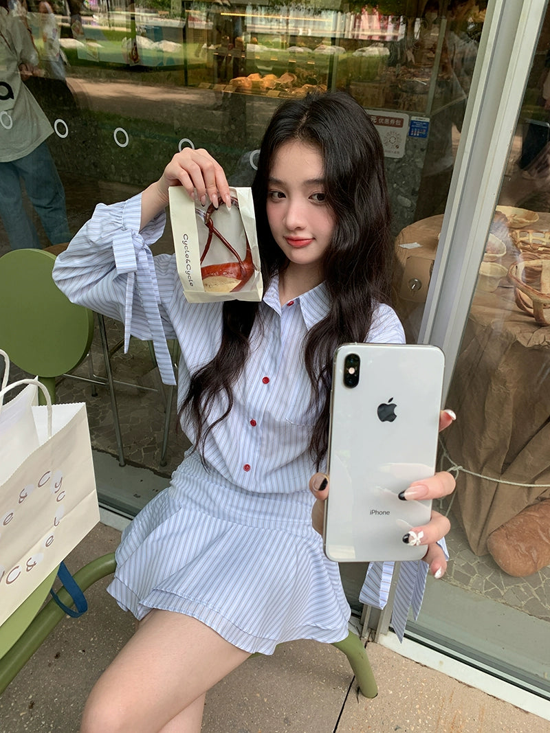 LILIAN ROBEのシックフリルハイウエストワンピースは、上品でありながらカジュアルさも兼ね備えたデザイン。ストライプパターンと赤いボタンが特徴で、普段使いから特別な日まで活躍するアイテムです。どんなスタイルにもマッチし、自分らしさを引き立てます。