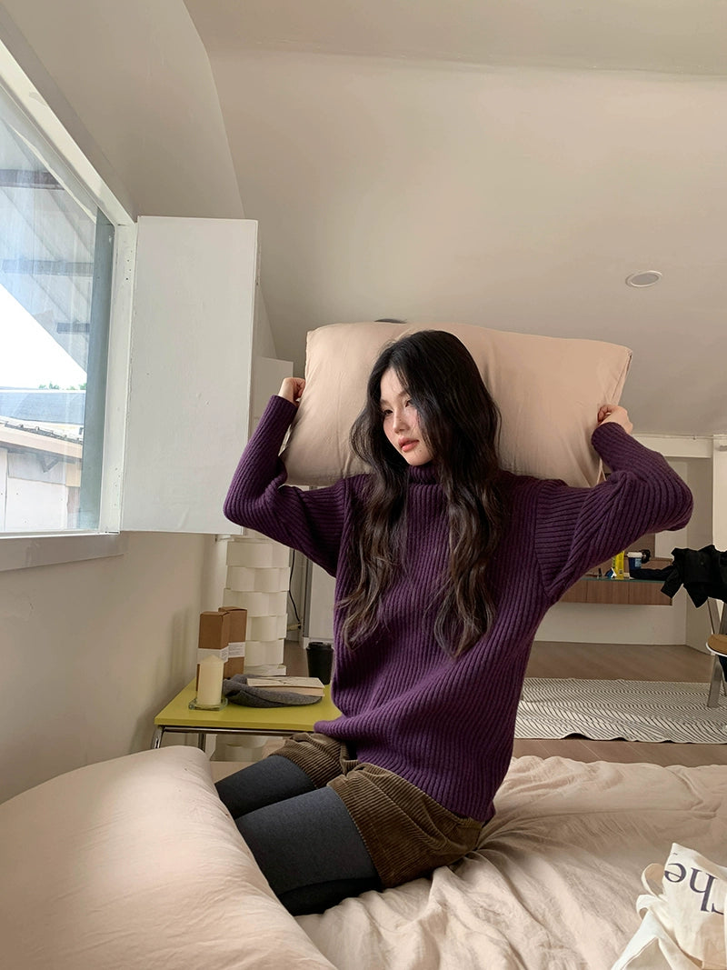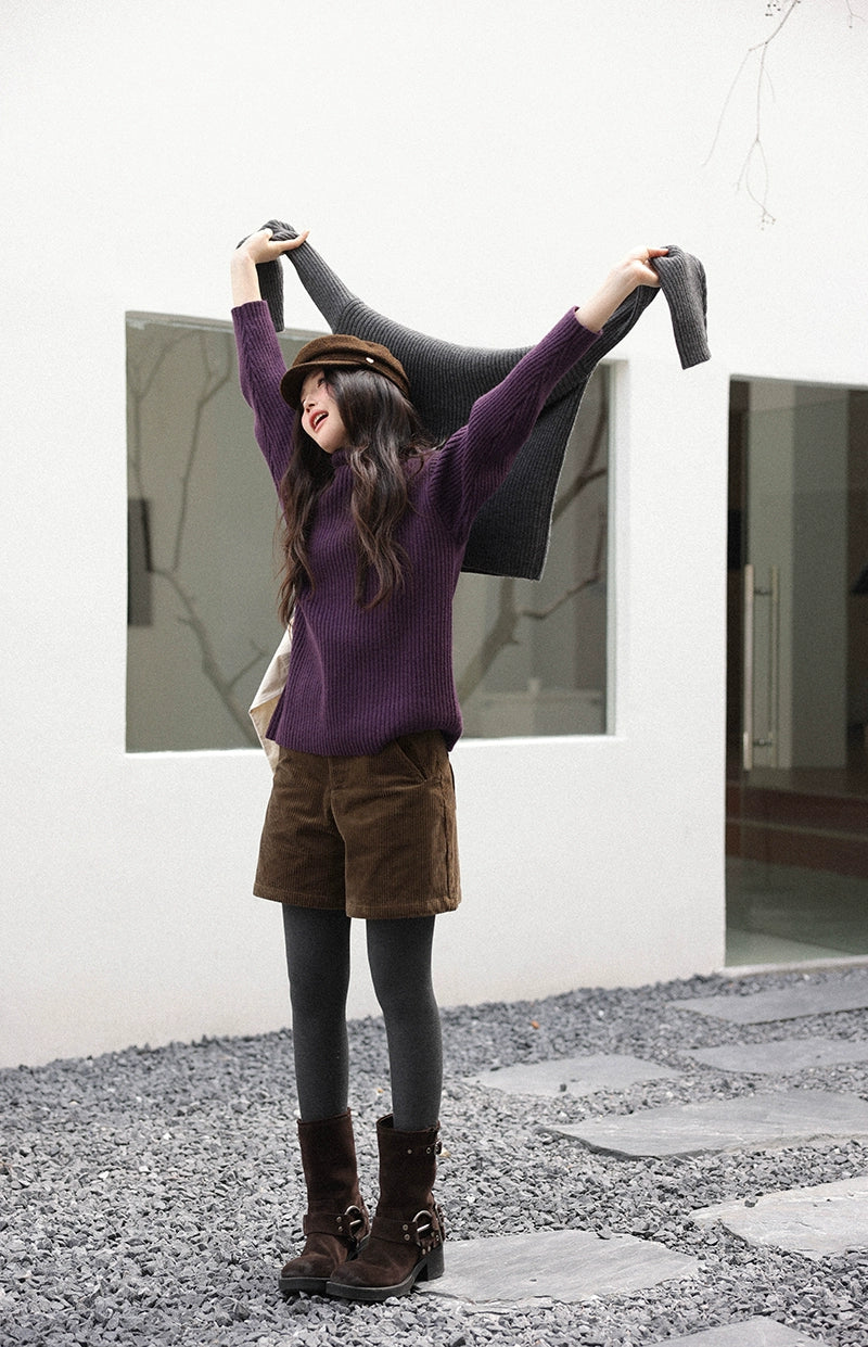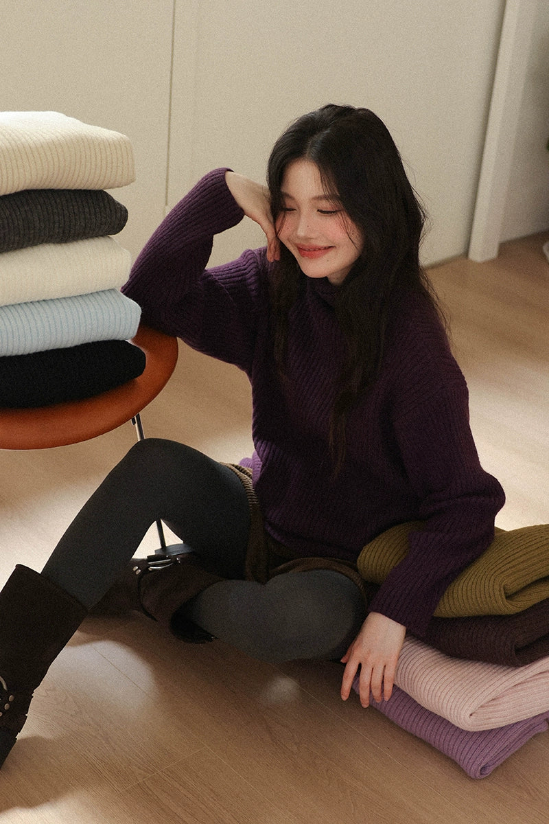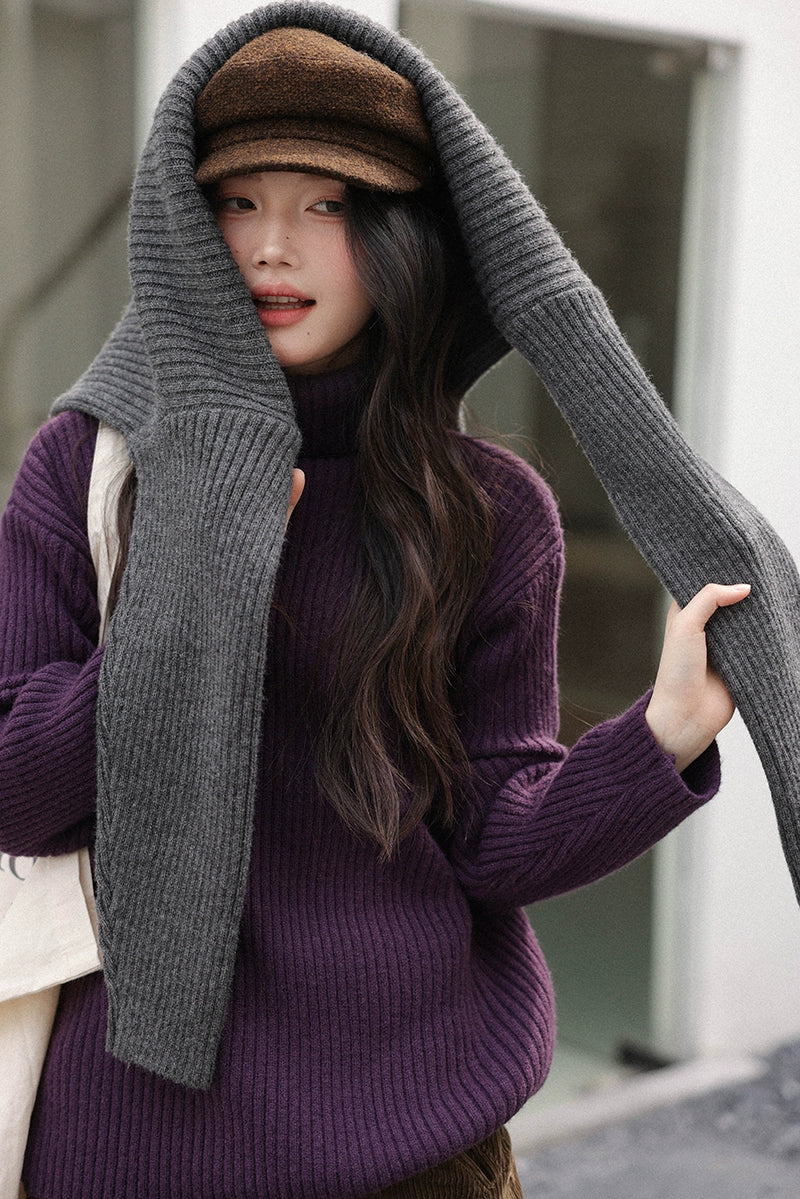 豊かな色合いのリブ編みデザインが魅力のストライプハイネックセーター。柔らかな素材感が心地よく、カジュアルからフォーマルまで幅広いシーンに対応。視覚的には、シンプルなデザインと細やかな編み目が、スタイリッシュな印象を与えます。日常使いにもぴったりで、秋冬の季節に活躍する一着です。