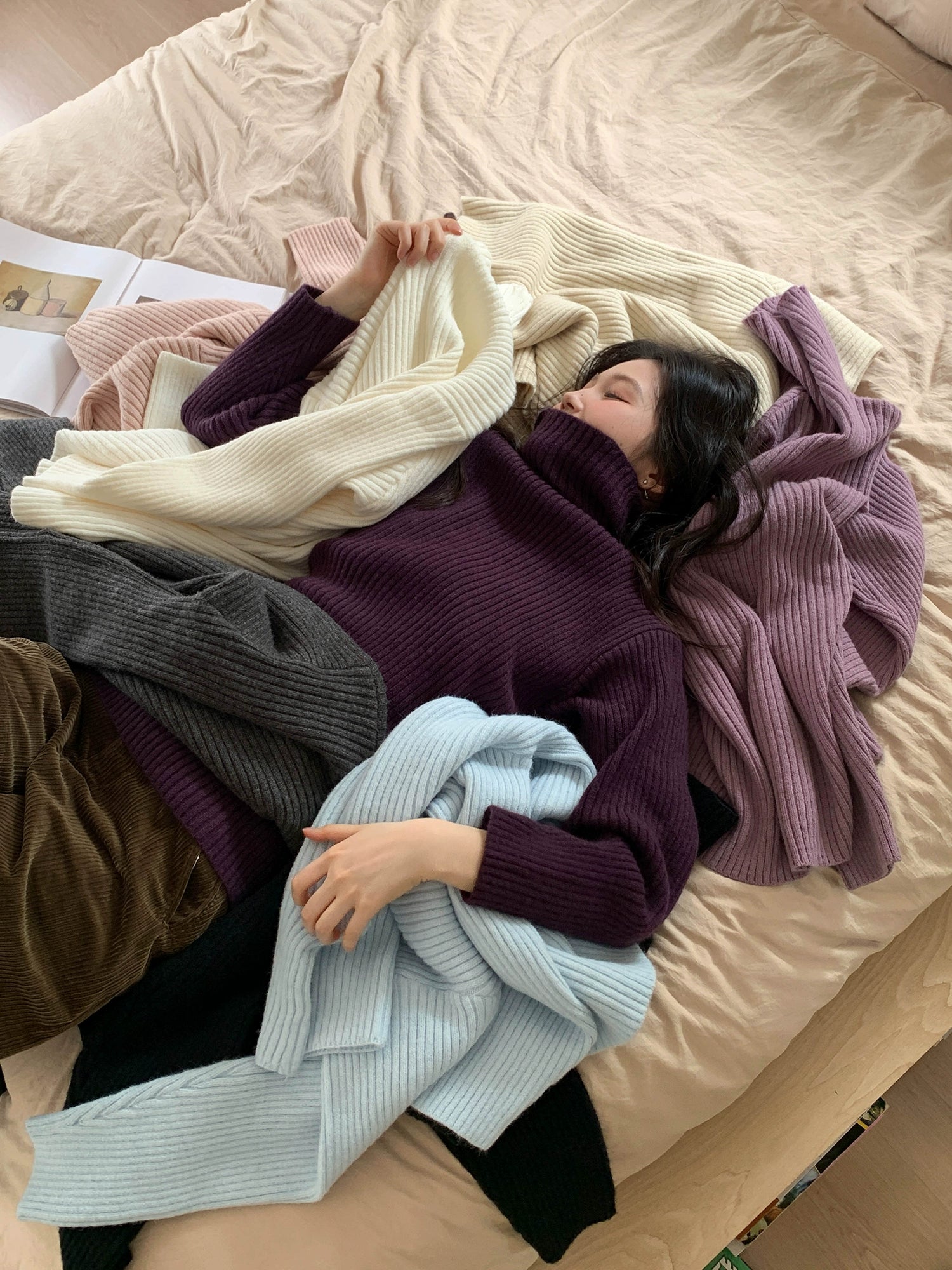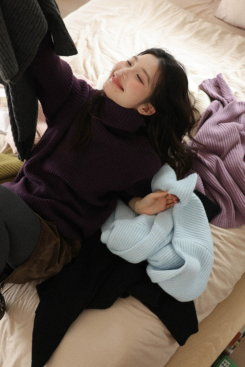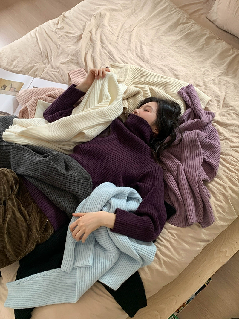 豊かな色合いのリブ編みデザインが魅力のストライプハイネックセーター。柔らかな素材感が心地よく、カジュアルからフォーマルまで幅広いシーンに対応。視覚的には、シンプルなデザインと細やかな編み目が、スタイリッシュな印象を与えます。日常使いにもぴったりで、秋冬の季節に活躍する一着です。