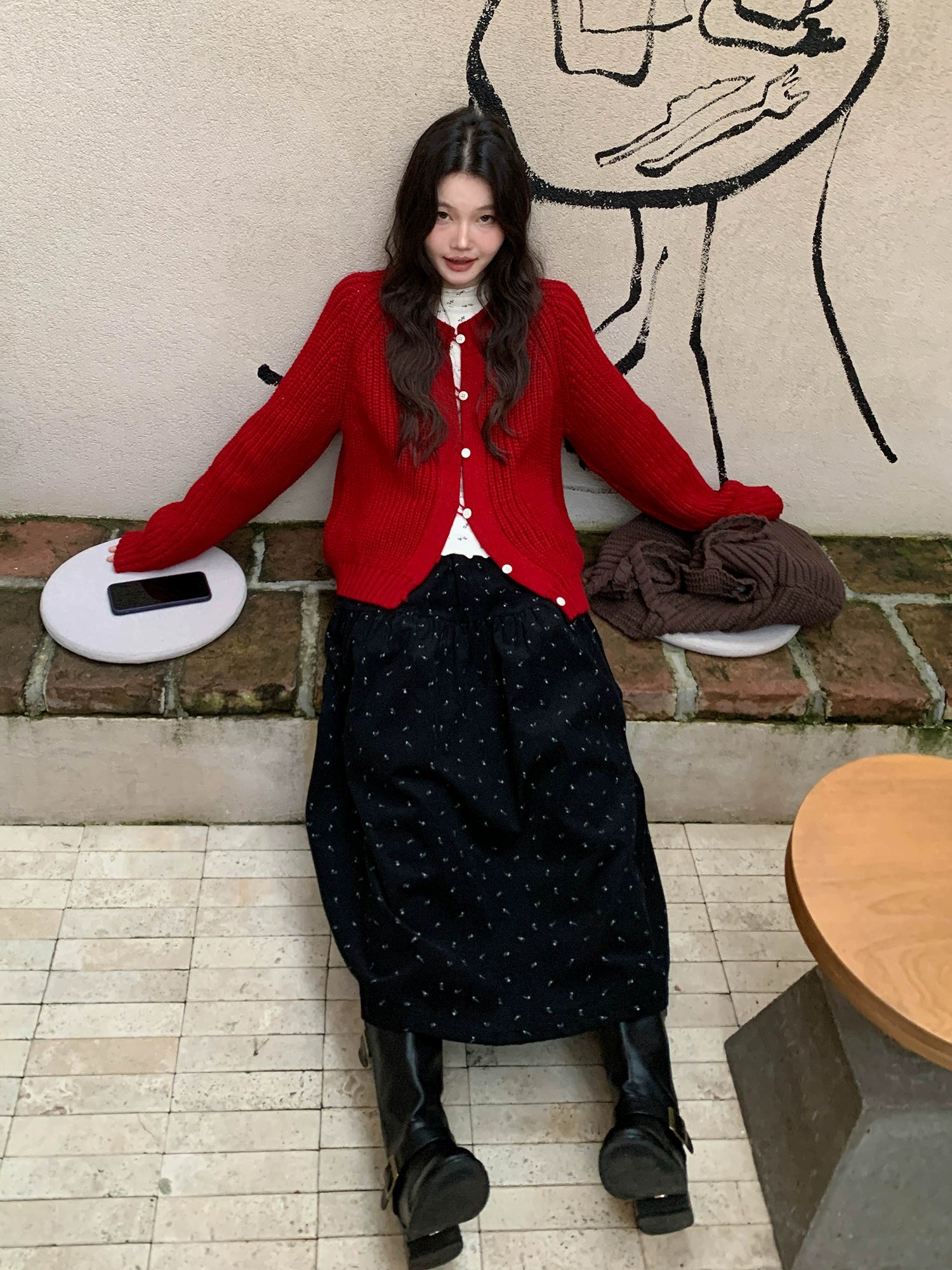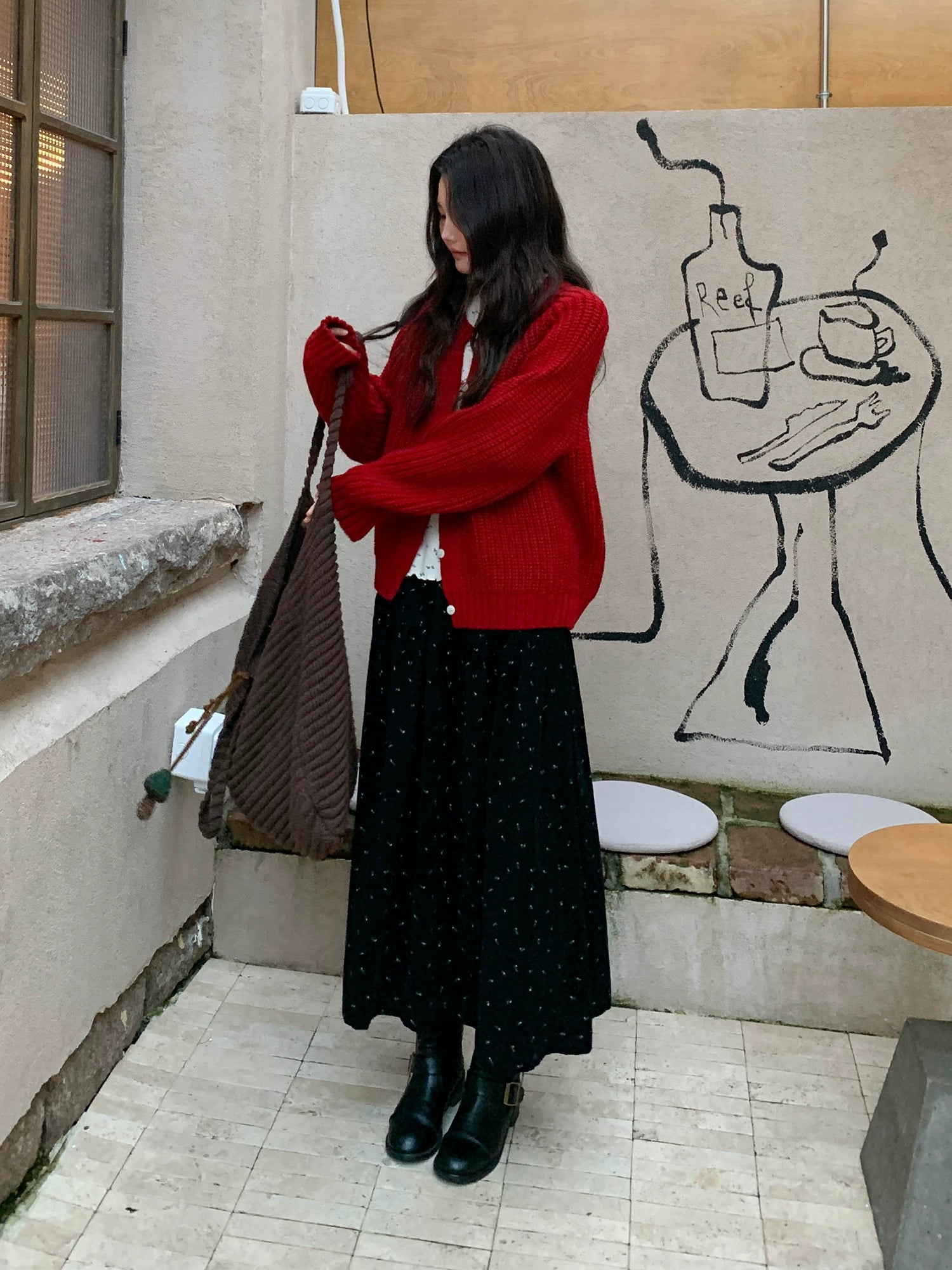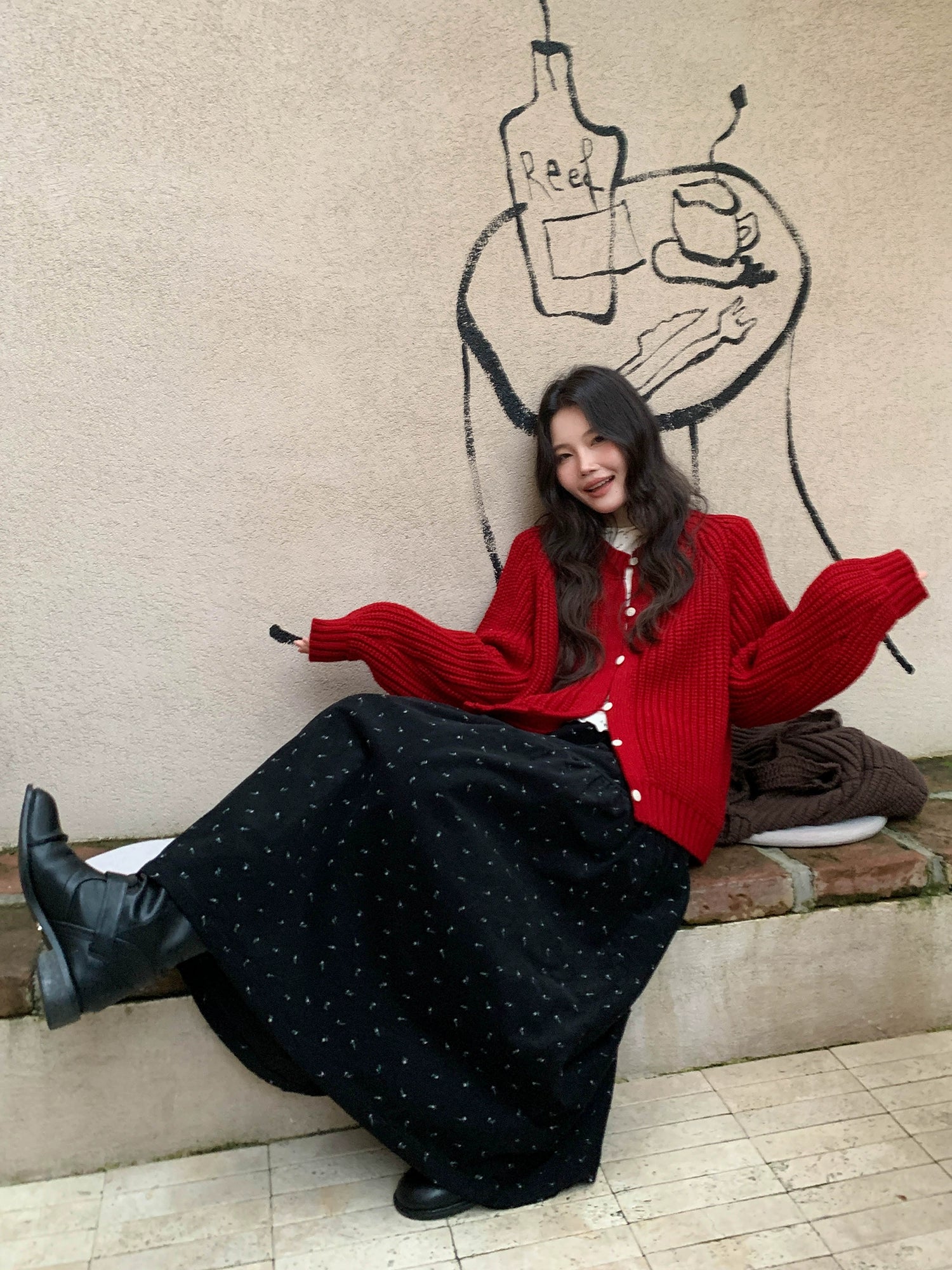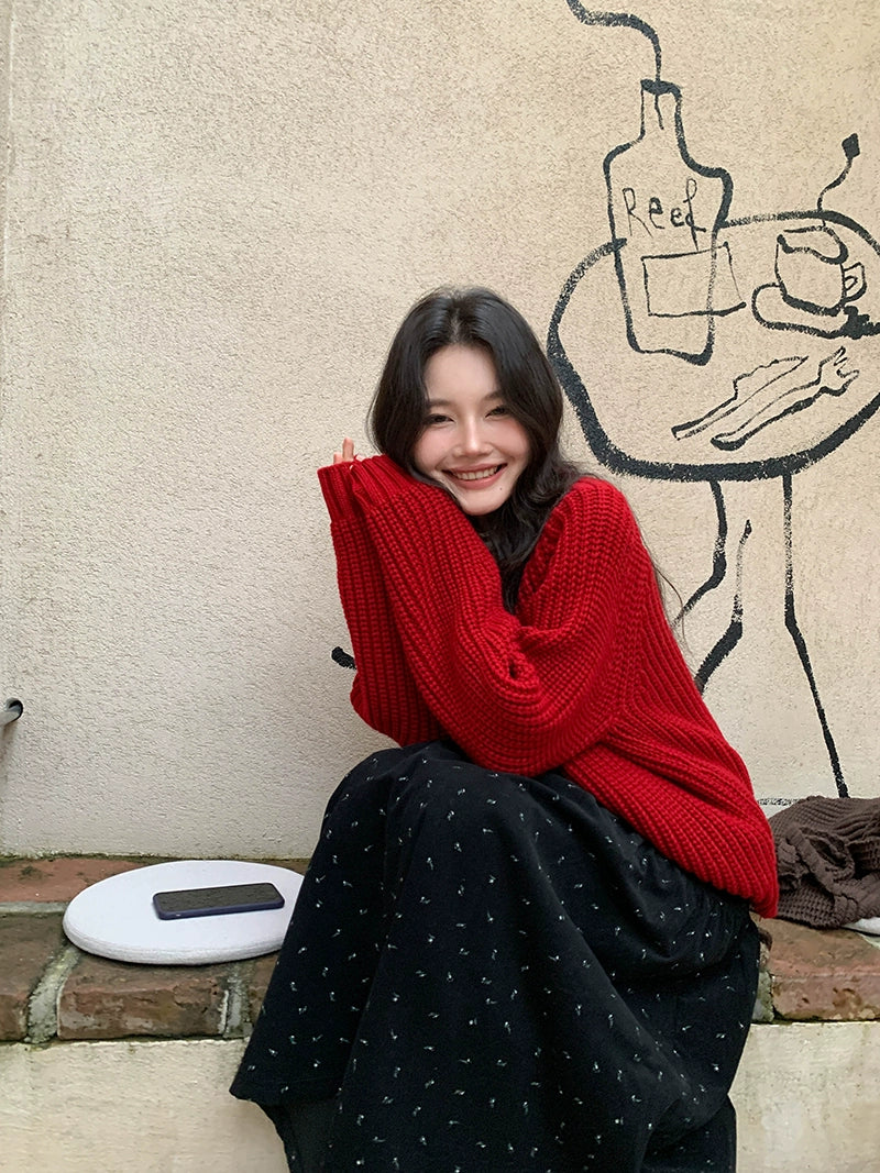 鮮やかな赤色のチャンキー ニット カーディガン。ふわふわとした質感と編み柄が特徴で、リラックスしたシルエットが女性らしさを引き立てます。プラスティック製のボタンがアクセントとなり、さまざまなスタイルに合わせやすく、カジュアルにもフォーマルにもマッチします。日常使いから特別なシーンまで幅広く活躍するアイテムです。